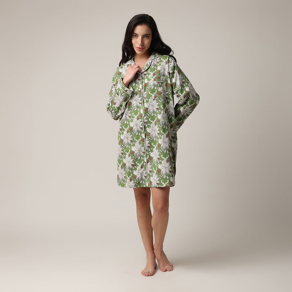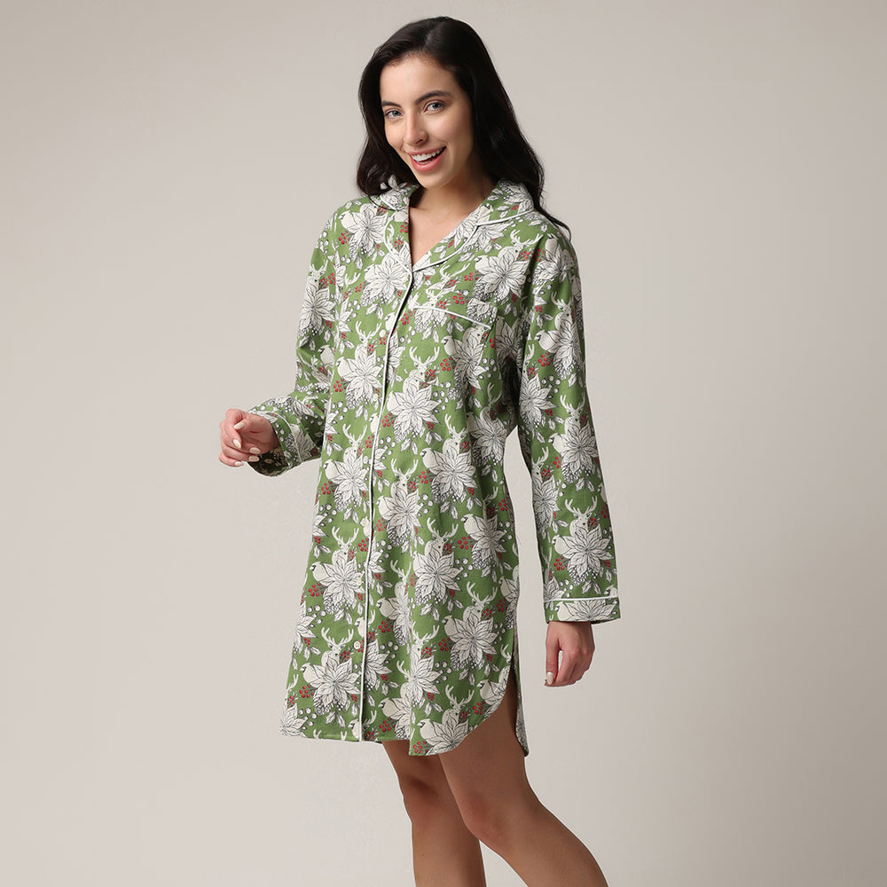 This print is pure holiday woodland magic! With graceful deer, snowy poinsettias, red berries, and cozy green vibes, it's like a winter fairytale on fabric.