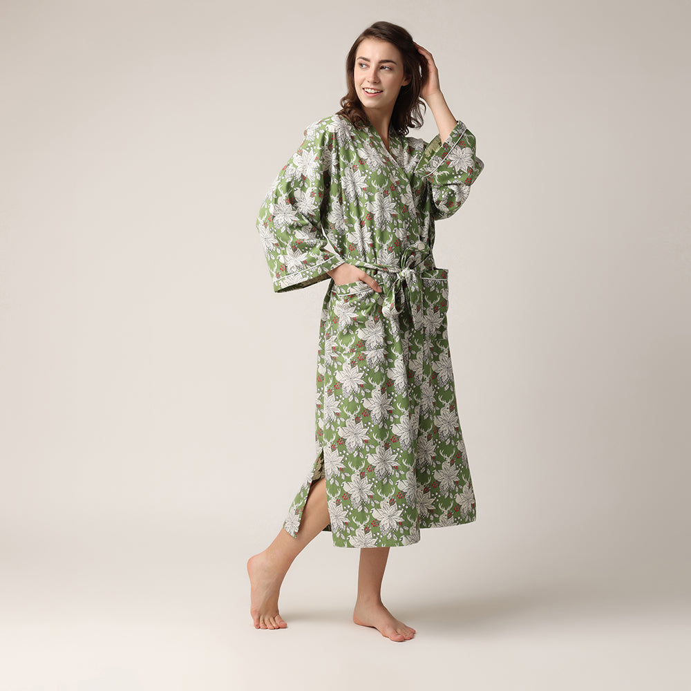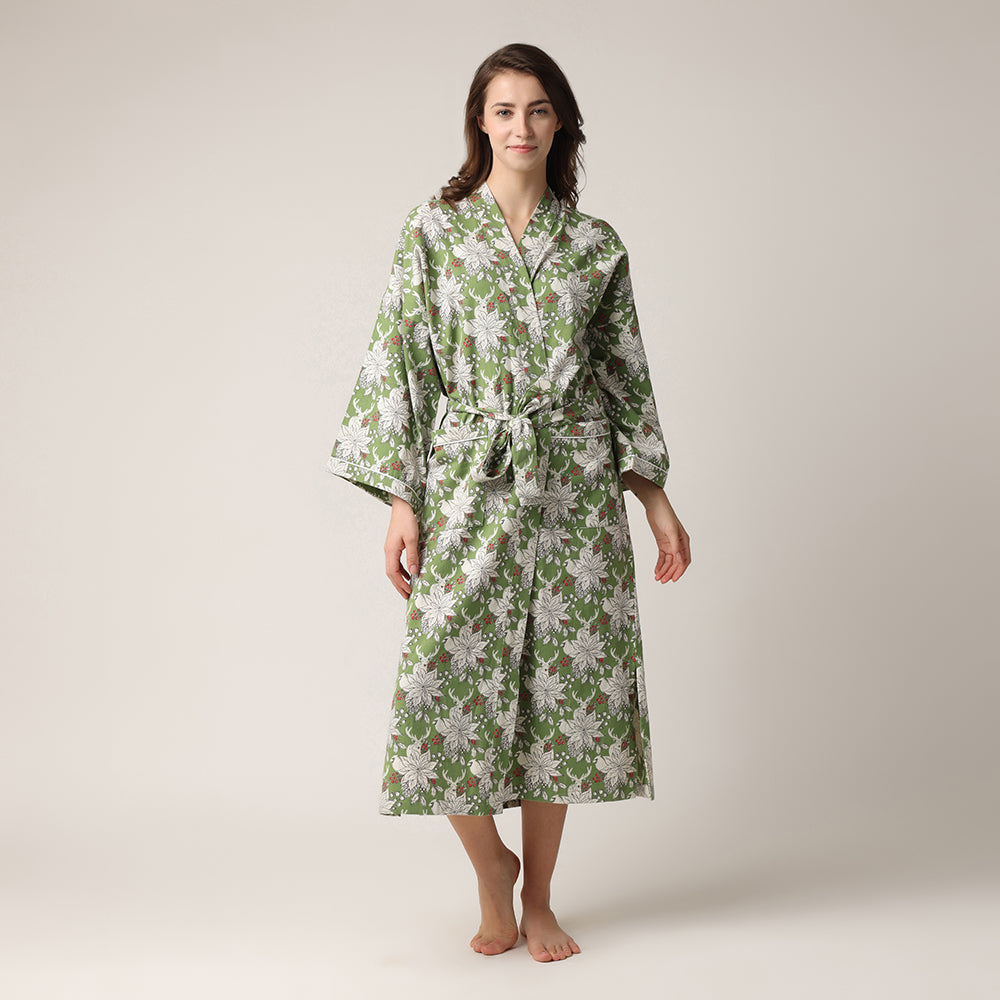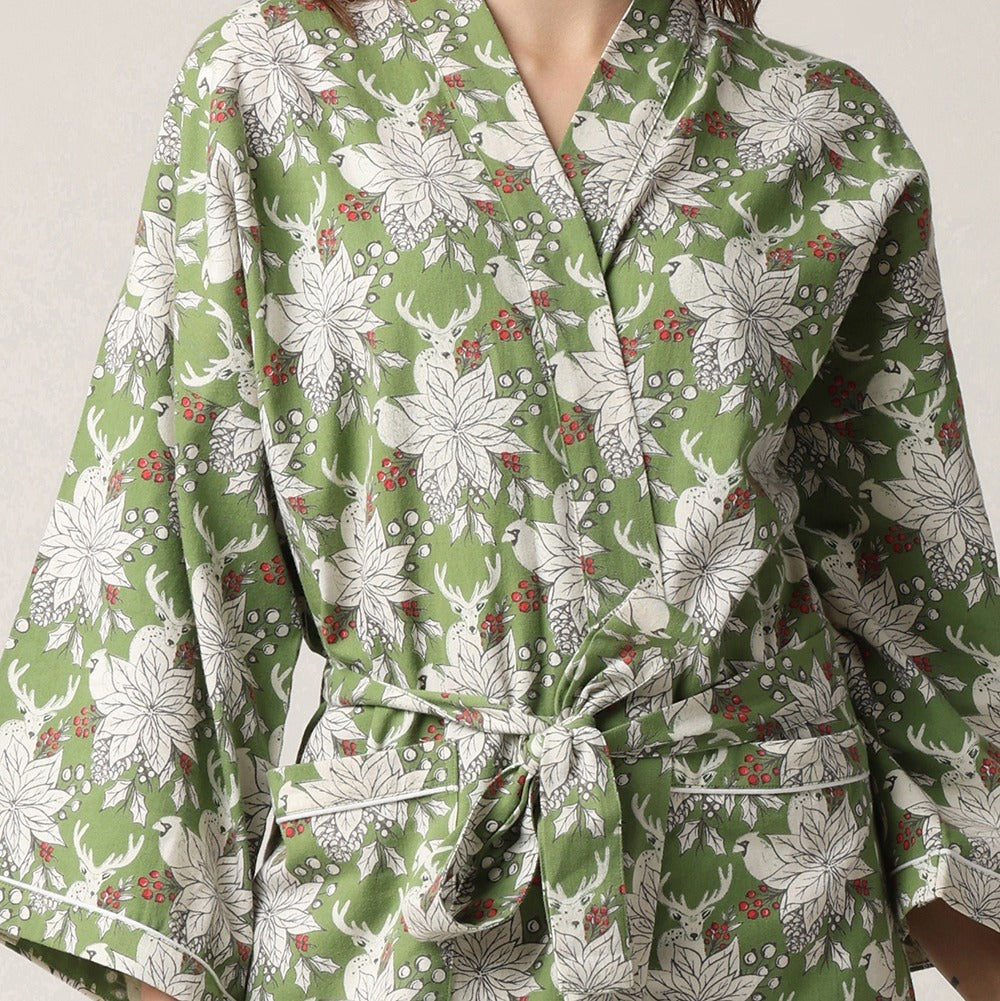 This print is pure holiday woodland magic! With graceful deer, snowy poinsettias, red berries, and cozy green vibes, it's like a winter fairytale on fabric.