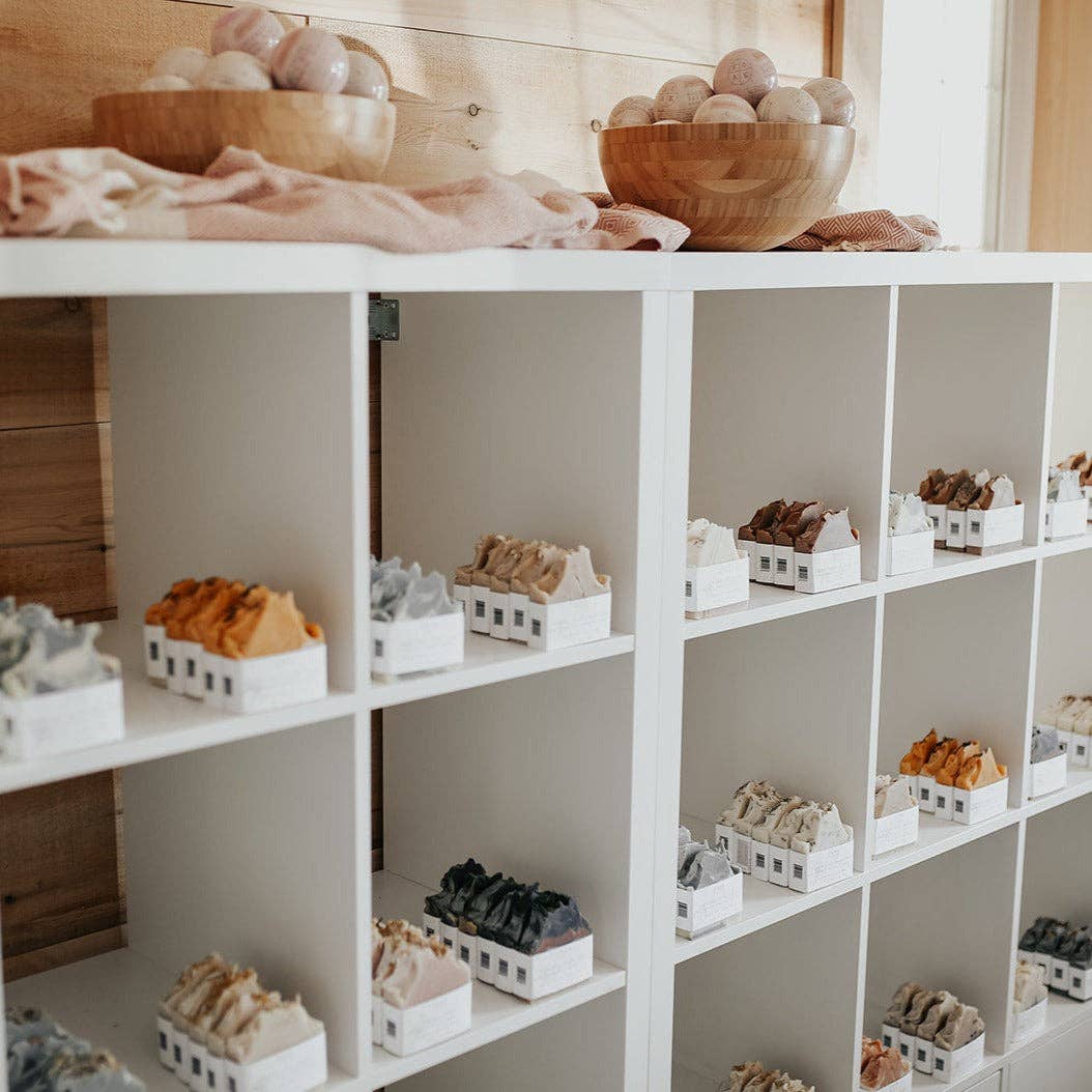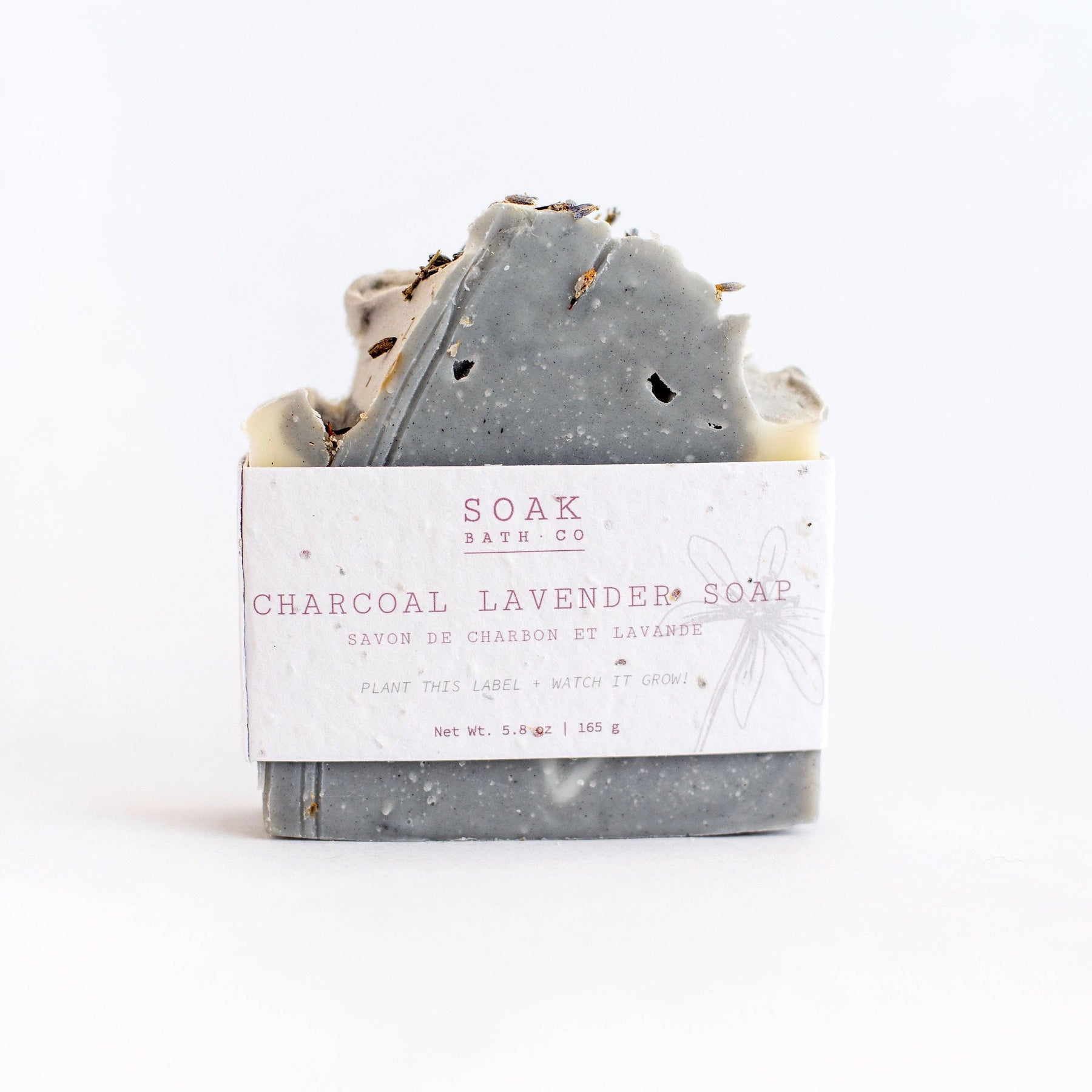 The Charcoal Lavender Soap Bar is carefully crafted with natural ingredients and pure lavender essential oil. This soap bar combines activated charcoal with the calming scent of lavender for a luxurious spa experience at home. A popular soap bar many grab to create a self care ritual from their home shower or to gift to their loved ones during holidays! We love to recommend the Charcoal Lavender Soap as a facial soap bar, throw a wedge of this bar into your gym bag to use post-workout. Recommended as a soap bar to use for the face, body and hands. This gorgeous bar soap is eco-friendly and sustainable. The label on each SOAK Bath Co bar is made of biodegradable, plantable seed paper so you can plant the label and it will grow into wildflowers! SOAK Bath Co is a woman-owned brand based in Manitoba, Canada. Each of our products is handmade by our local team of women in our Canadian studio with all-natural, vegan-friendly ingredients. We believe in creating sustainable, eco-friendly products that make the
