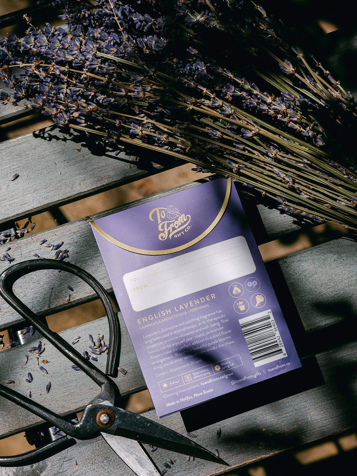 Hand-drawn by lettering artist Kristen De Palma and printed on premium cardstock with luxe matte gold foil details, each seed packet features a to/from and custom message area on the back & an explanation of the floriography meaning behind the botanical for the perfect thoughtful, all-in-one gift. Seeds are sourced sustainably from partners in Canada, and all seeds are organic / non-GMO. LAVENDER // SERENITY Lavandula angustifolia • PERENNIAL Lavender’s distinctive and soothing fragrance has long been used in aromatherapy, as its therapeutic properties promote relaxation and well-being. Their beauty can be enjoyed year-round, as lavender flowers make the perfect addition to a dried flower arrangement. May these beautiful purple blooms bring you an inner sense of calm amidst the chaos. Contains: Approximately 20 seeds.