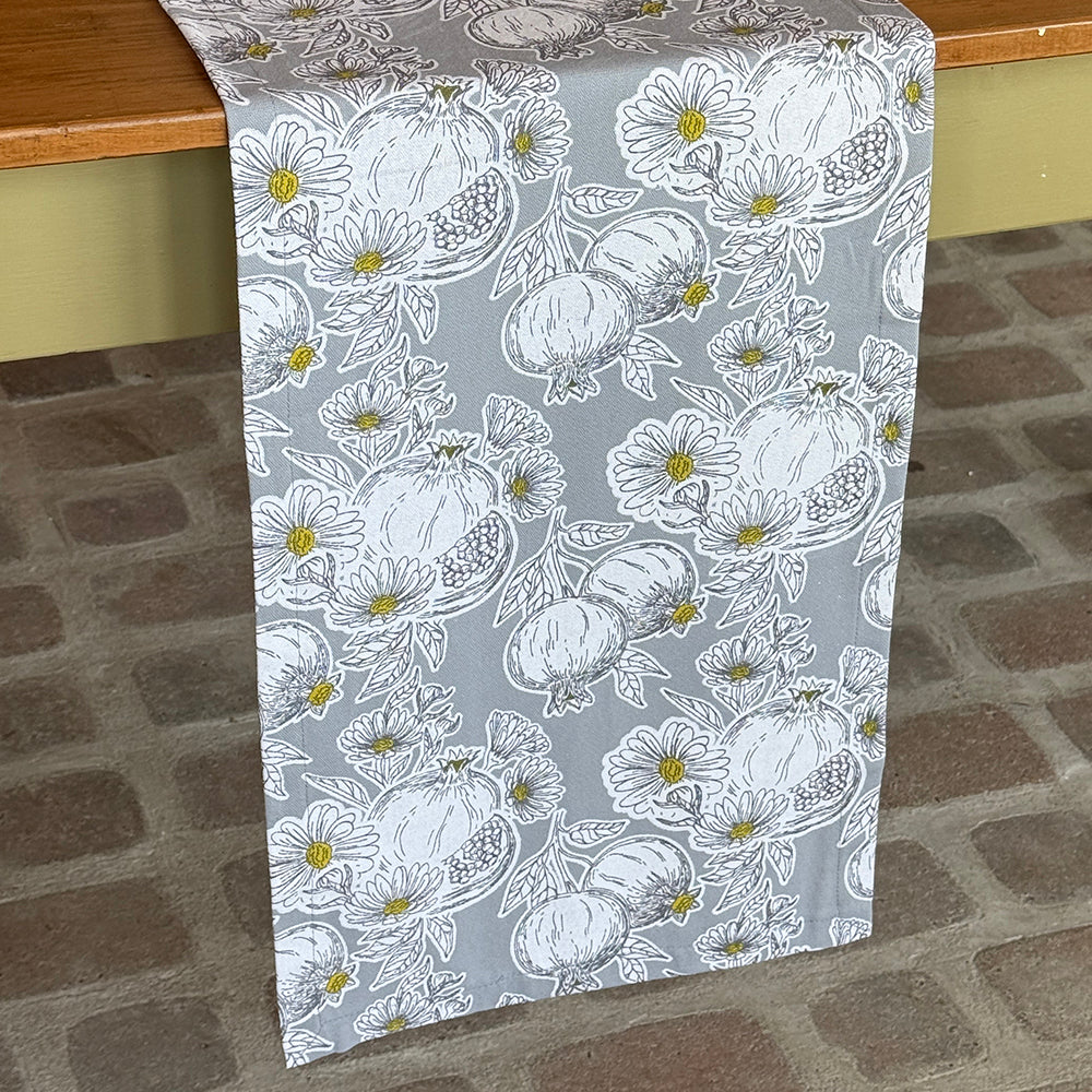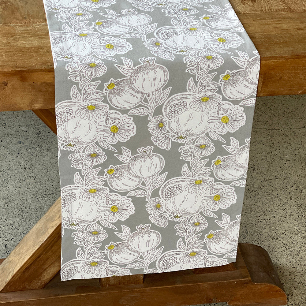 Handscreen printed runner. 13"X72". 100% Cotton. Machine wash in cold water. Low heat tumble dry. Made in India