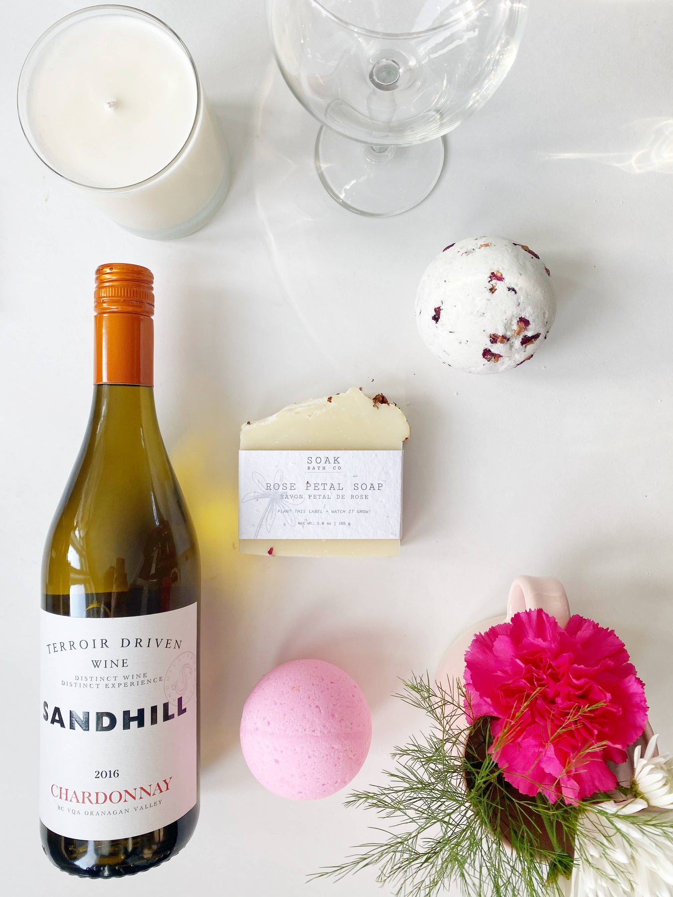 The Rose Petal Bath Bomb by SOAK Bath Co is the most romantic bath bomb! Beautiful rose petals will float on the bath water creating a spa like experience right at home, the perfect Valentine's or Mother's Day gift! The Rose Petal Bath Bomb has a light, floral scent, just like a bouquet of roses. Each bath bomb is individually wrapped in shrink wrap. Shrink wrap protects from damage during shipping + reacting to moisture (humid/rain) How to Use: Draw yourself a bath and get in there! Pop this bath bomb into the tub and watch while it fizzes, releasing the moisturizing properties of coconut and avocado oil. SOAK Bath Co is a woman owned brand based in Manitoba, Canada. Each of our products is handmade by our local team of women in our Canadian studio with all natural, vegan-friendly ingredients. We believe in creating sustainable products that make the best gifts and you feel great using on your skin. The best part, you can plant our soap labels and they'll grow into wildflowers!