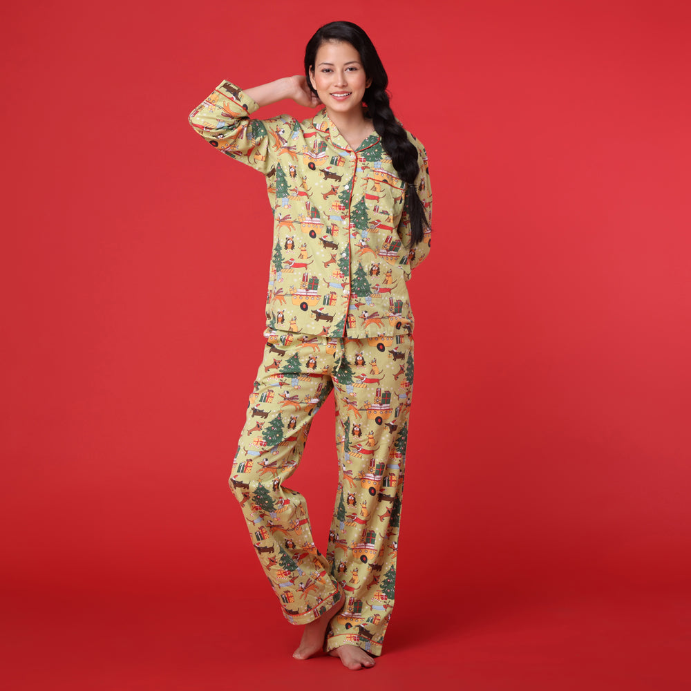 Vibrant Holiday Dogss, it doesn't get more classic than this! This festive pajama will instantly put you in the holiday spirit.