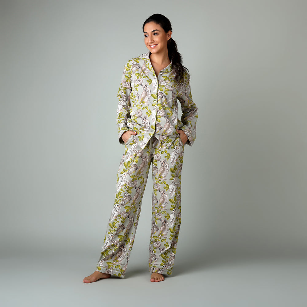 Pj bottom a has drawstring as well as an elastic waist. With pockets and piping details.