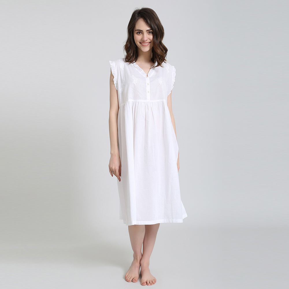 Helen Sleeveless, White nightgown.